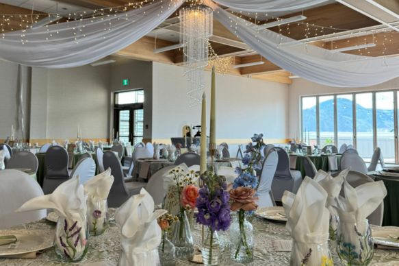 Make a lasting impression in this elegant and highly adaptable venue. A fully retractable wall of windows fills the room with natural light and opens onto a spacious private patio, offering breathtaking views of the TRU Campus Commons and the surrounding Kamloops mountain landscape. Perfect for creating a seamless indoor–outdoor atmosphere, this versatile space is perfect for spirited social gatherings, engaging conferences, standout special events, and unforgettable weddings.