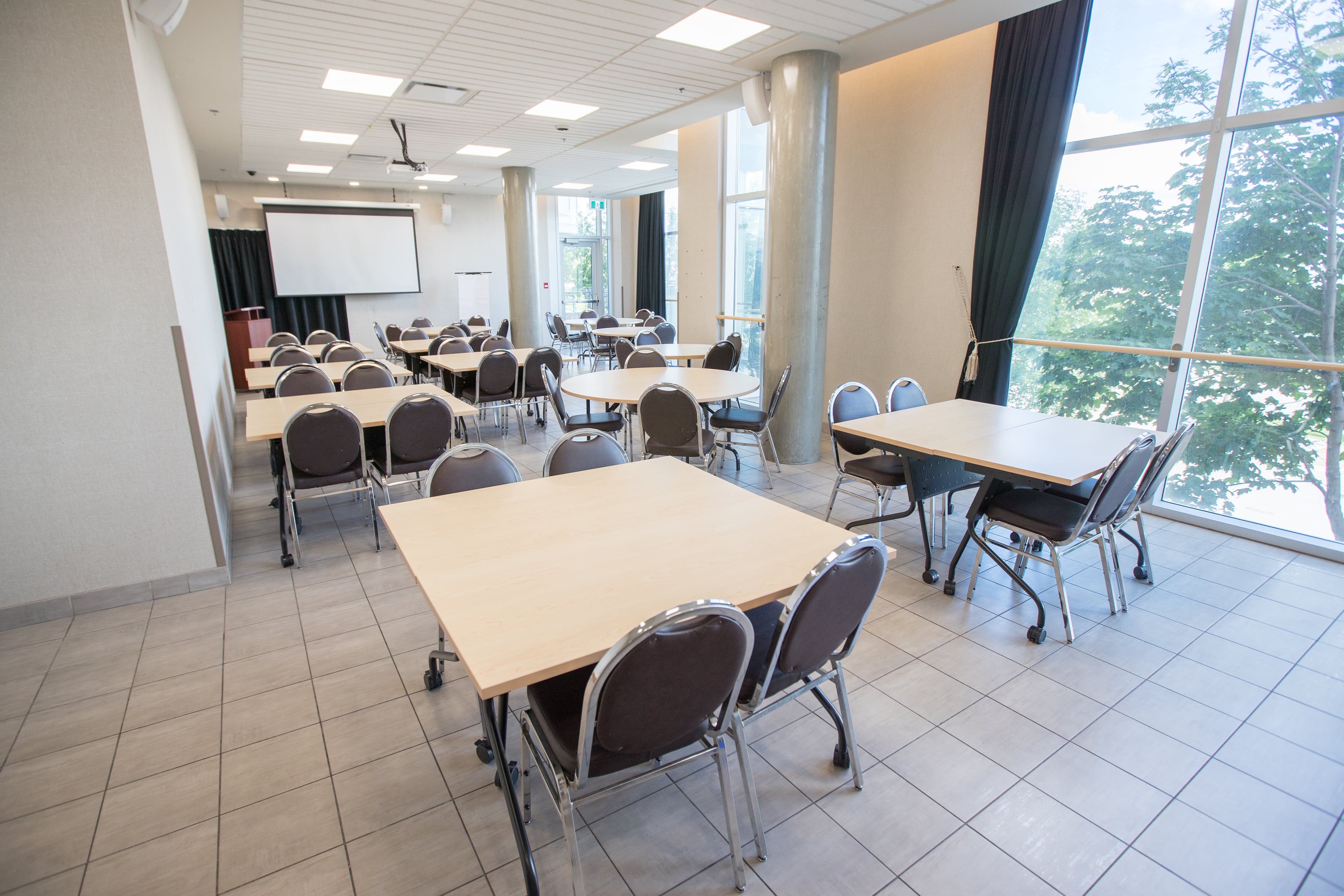 This versatile space is located on the first floor of The Residence & Conference Centre. Floor to ceiling windows provide natural light and a great view of city. This room also has access to a large brick patio for guests to soak up the Kamloops sunshine during breaks. Ideal for meetings, social gatherings, sports groups or interactive workshops.