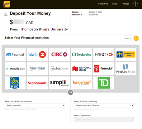 Thompson Rivers University has partnered with PayMyTuition for domestic student refund processing. PayMyTuition will remit the refund to via Interac etransfer. Once the process for your refund has been initiated by Thompson Rivers University, students will receive an email notification from PayMyTuition with instructions on the next steps.